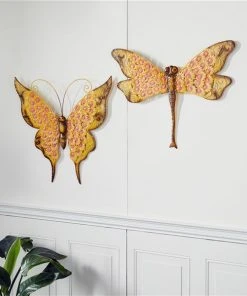 Grayson Lane 22-in x 25-in Yellow Metal Farmhouse Butterfly Garden Sculptures – Set of 2
