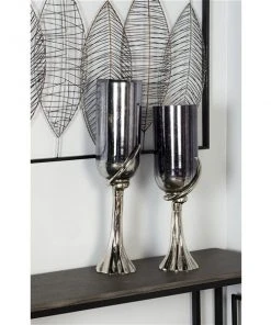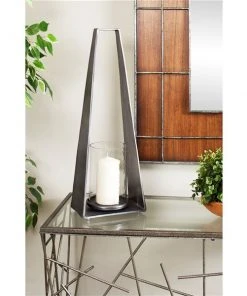 Grayson Lane 24-in x 9-in Modern Candle Holder Lantern – Grey Aluminum