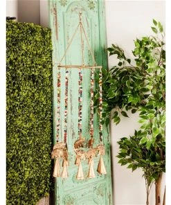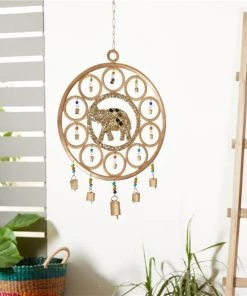 Grayson LaneĀ 26-in Gold Metal Elephant Wind Chime with Bells and Multicoloured Glass Beads