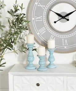 Grayson Lane 3-Candle Pillar Holder – 6-in, 8-in, 10-in -Light Blue Mango Wood