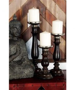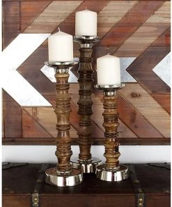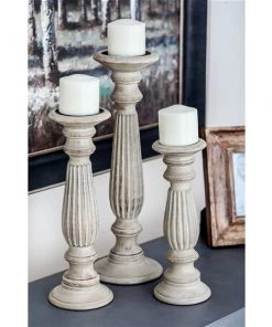 Grayson Lane 3-Candle Wood Pillar Holder – 10-in, 13-in, 16-in
