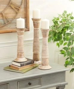 Grayson Lane 3-Candle Wood Pillar Holder – 12-in 15-in, 18-in