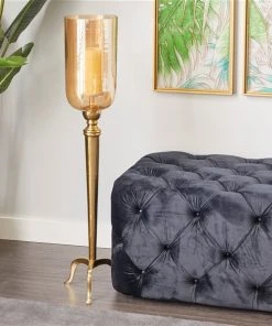 GRAYSON LANE 38 In. x 9 In. Traditional Candlestick Holders Gold Aluminum