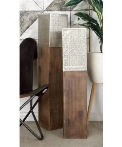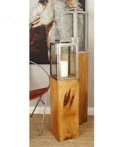 Grayson Lane 36-in x 9-in Contemporary Candle Holder Lantern – Brown Mango Wood
