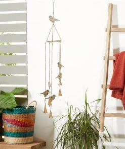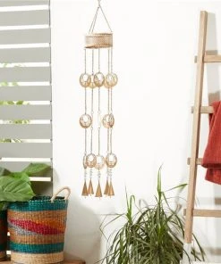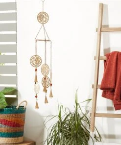 Grayson LaneĀ 35-in Gold Metal Wind Chime with Bells and Multicoloured Beads
