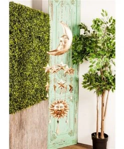 Grayson LaneĀ 39-in Gold Metal Sunface Wind Chime with Moon and Stars