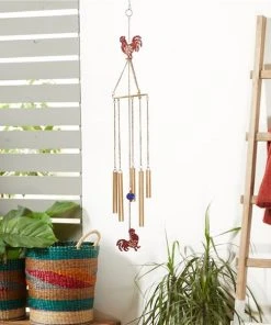 Grayson LaneĀ 37-in Gold Metal Red Rooster Wind Chime with Sequined Details