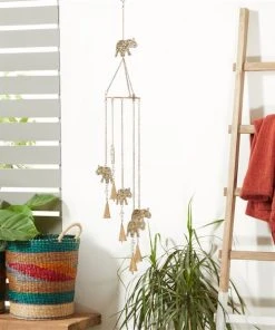 Grayson LaneĀ 39-in Gold Metal Beaded Baby Rhino Wind Chime with White Glass Beads
