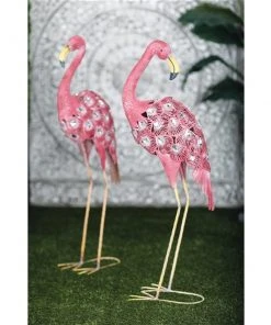 Grayson Lane 38-in H x 10-in W Metal Pink Flamingo Garden Statue – Set of 2