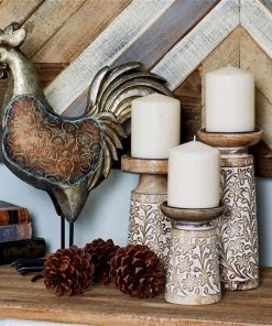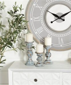 Grayson Lane Light Blue Wooden Pillar Candle Holder – Set of 3