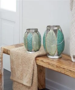 Grayson Lane Green Leaves Metal Lantern Candle Holder – Set of 2