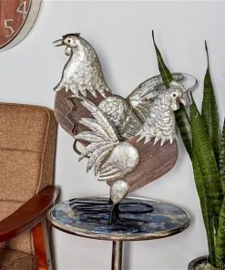 GRAYSON LANE Greyson Lane 16-in x 13-in Silver Rooster Garden Statues – Set of 2