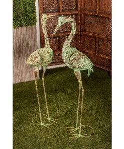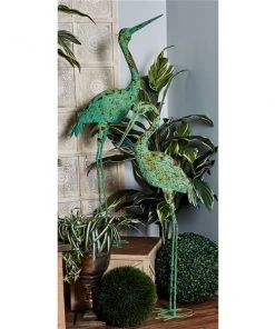 GRAYSON LANE Greyson Lane 47-in x 19-in Green Flamingo Garden Statues – Set of 2