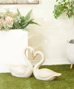 GRAYSON LANE Greyson Lane 16.95-in x 32.25-in White Swan Animal Garden Statue