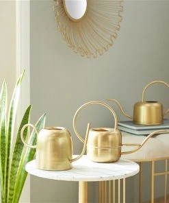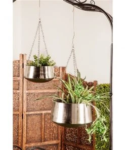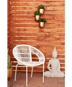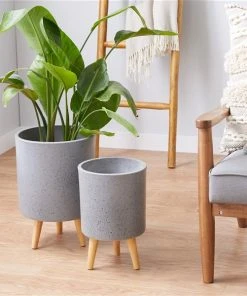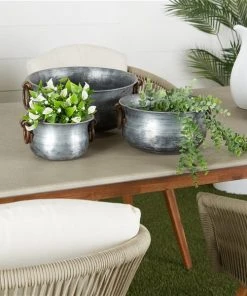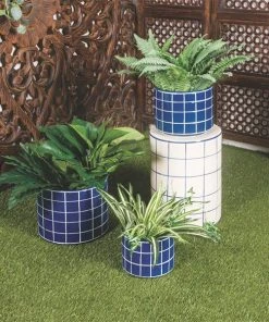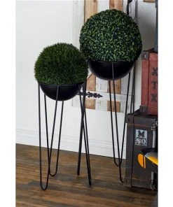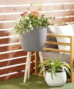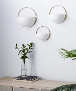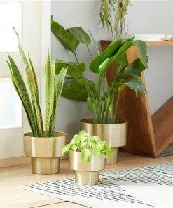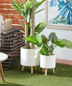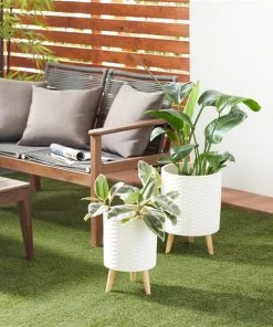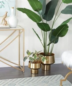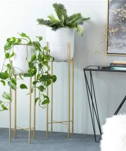 Grayson Lane 13-in W x 46-in H Contemporary White Metal Round Planters with Gold Stands – Set of 2