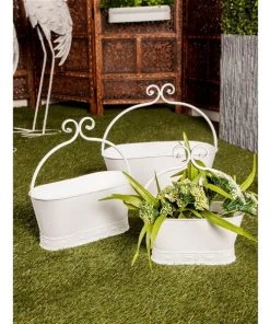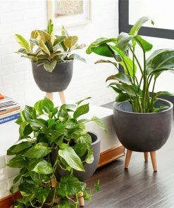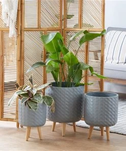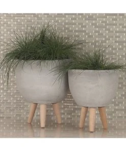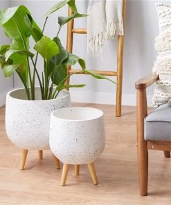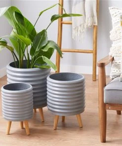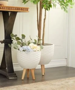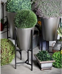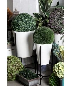 Grayson Lane 15-in W x 27-in H Modern White Metal Round Planters with Black Stands – Set of 3