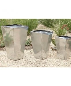 Grayson Lane 15-in W x 27-in H Modern Glossy Cream Metal Round Planters with Black Stands – Set of 3