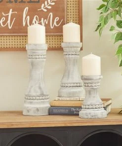 Grayson Lane 1-Candle Grey Wood Pillar Candle Holder – Set of 3
