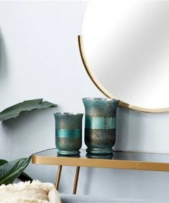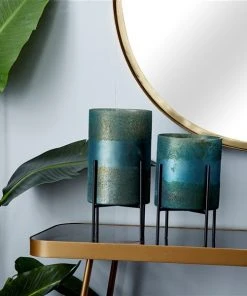 Grayson Lane 1-Candle Green Glass Hurricane Candle Holder – Set of 2