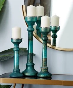 Grayson Lane 1-Candle Green Glass Pillar Candle Holder – Set of 3