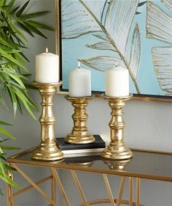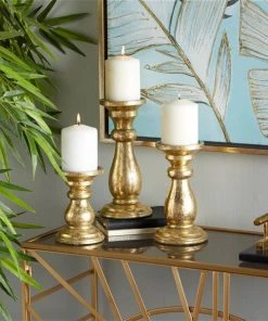 Grayson Lane 1-Candle Gold Wood Pillar Candle Holders – 3-Piece