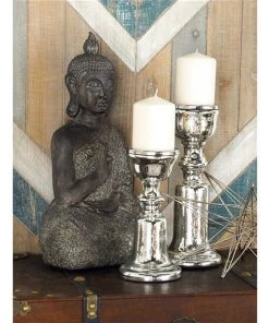 Grayson Lane Set of 2 Traditional Silver Glass Pillar Candle Holder
