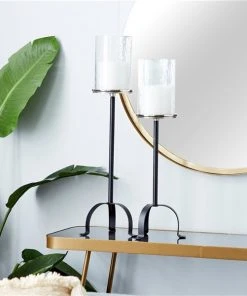 Grayson Lane Set of 2 12.75-in, 21.25-in Candle Holder – Black Metal