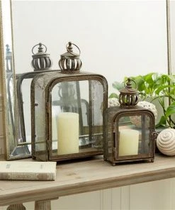 GRAYSON LANE Set of 2 17 In., 12 In. Rustic Lantern Brown Metal