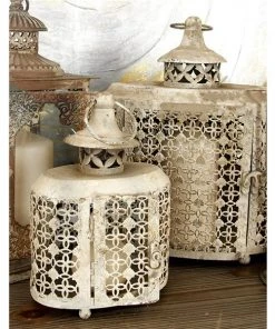 GRAYSON LANE Set of 2 12 In., 9 In. Rustic Lantern Beige Metal