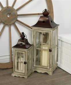 GRAYSON LANE Set of 2 26 In., 18 In. Coastal Lantern Cream Wood