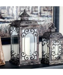 GRAYSON LANE Set of 2 24 In., 18 In. Traditional Lantern Brown Metal