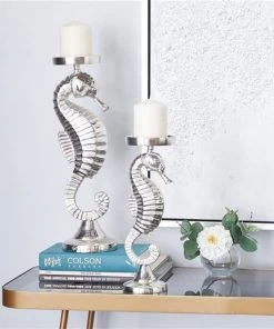 Grayson Lane Set of 2 18-in, 14-in Coastal Candle Holder – Silver Aluminum