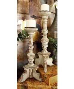 Grayson Lane Set of 2 20-in, 17-in Vintage Candle Holder – White Wood