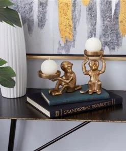 Grayson Lane Set of 2 13-in x 4-in Traditional Candle Holders -Gold Poly Stone