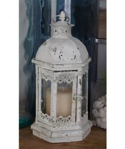 GRAYSON LANE Set of 3 29 In., 20 In., 14 In. Rustic Lantern White Metal