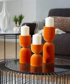 GRAYSON LANE Set of 3 13 In., 10 In., 7 In. Modern Candle Holder Orange M