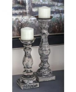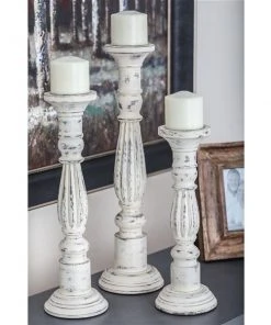 Grayson Lane Set of 3 21-in, 17-in, 15-in Traditional Candle Holder – White Mango Wood