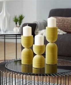 GRAYSON LANE Set of 3 13 In., 10 In., 7 In. Modern Candle Holder Yellow M