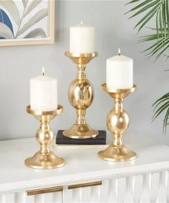 Grayson Lane Set of 3 10-in, 8-in, 6-in Glam Candle Holder – Gold Aluminum