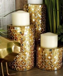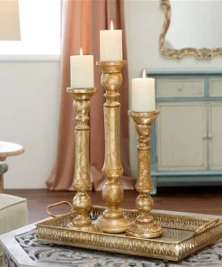 Grayson Lane Set of 3 21-in, 18-in, 15-in Traditional Candle Holder – Gold Mango Wood