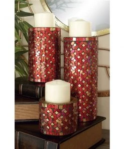 Grayson Lane Set of 3 11-in, 7-in, 4-in Glam Candle Holder – Red Metal