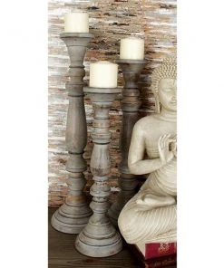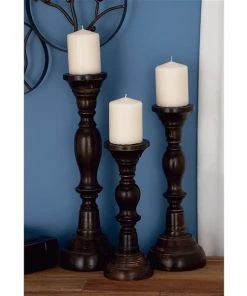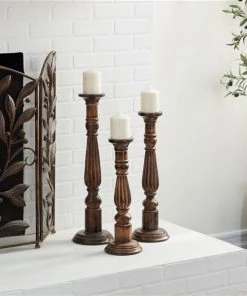 Grayson Lane Set of 3 23-in, 21-in, 18-in Traditional Candle Holder – Brown Mango Wood