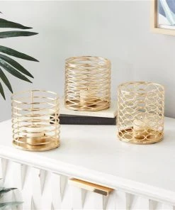 Grayson Lane Set of 3 4-in x 4-in Glam Candle Holders -Gold Iron