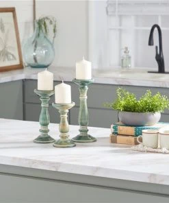 Grayson Lane Set of 3 Farmhouse Green Mango Wood Pillar Candle Holder