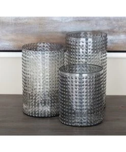 Grayson Lane Set of 3 Traditional Silver Glass Pillar Candle Holder