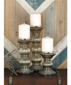 Grayson Lane Set of 3 Traditional Glass Pillar Candle Holder