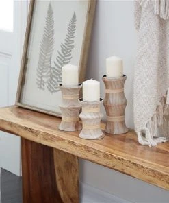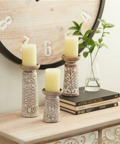 Grayson Lane Set of 3 White Mango Wood Pillar Country Cottage Candle Holder