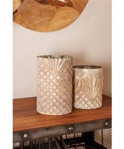 Grayson Lane Set of 3 Vintage Beige Glass Pillar Candle Holder