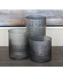Grayson Lane Set of 3 Traditional Clear Glass Pillar Candle Holder