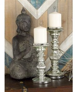 Grayson Lane Set of 3 Glam Silver Glass Pillar Candle Holder